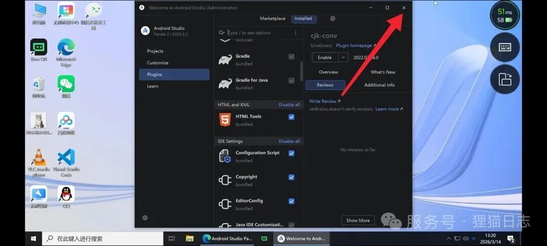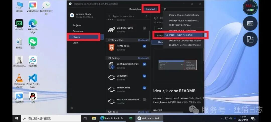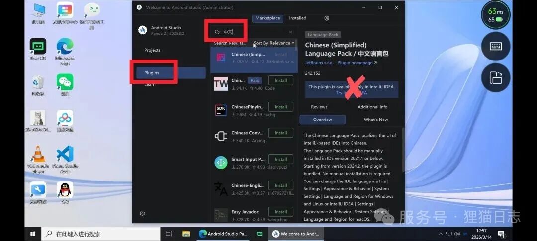最新版本的Android studio 2025.3.2没有中文语音包,之前的版本都是从JetBrains官方插件市场去安装,但是JetBrains官方插件市场目前只有2024年版本的。所以我们要找到一个兼容最新版本的汉化包,最新版本的Android studio汉化包可以到GitHub或Gitee我的开源仓库去拉取,或者在评论@作者来要都可以。