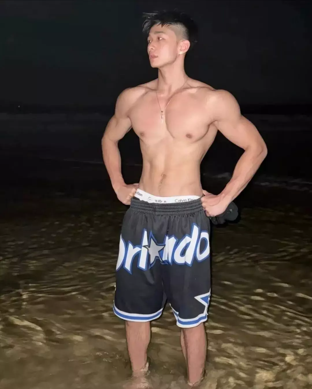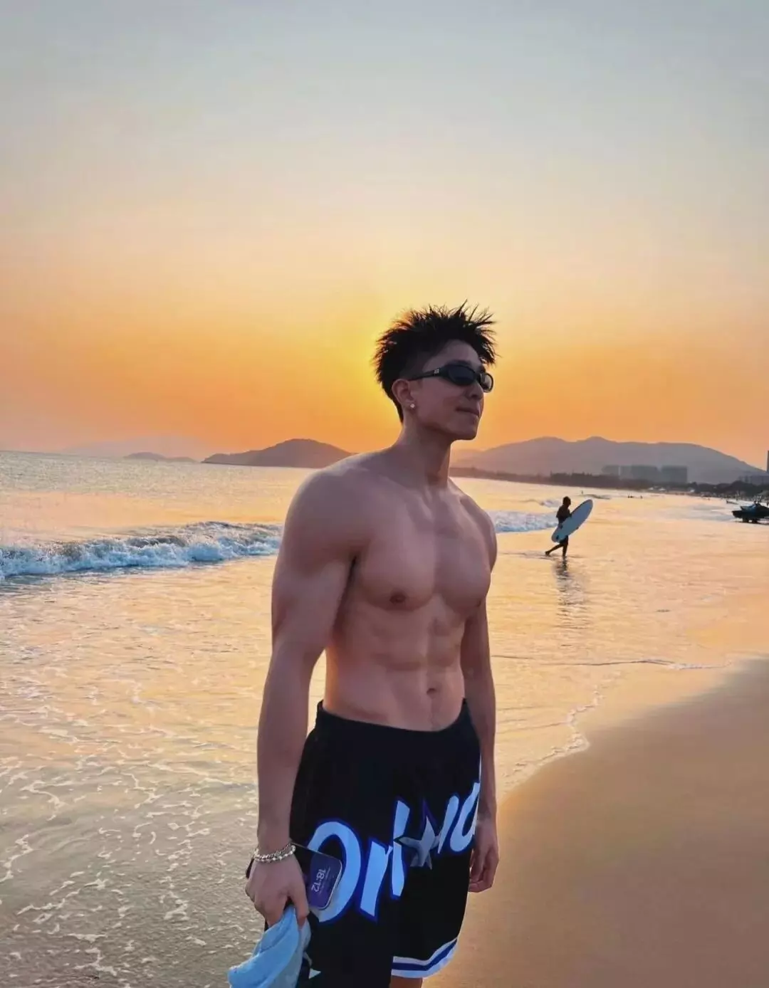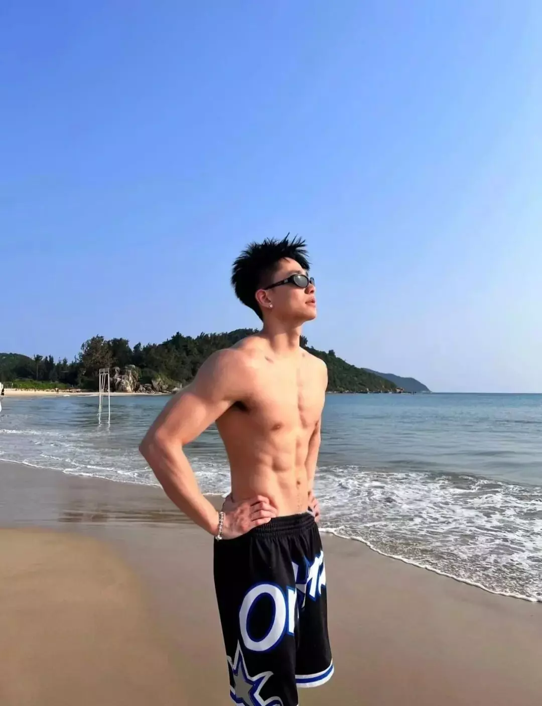 他最爱在海边记录生活。夏日的海风拂过,他换上随性的短裤,奔跑在沙滩上,或静坐在礁石上眺望远方。镜头下,他紧实的胸肌线条清晰,流畅的腹肌若隐若现,随着呼吸展现着健康的律动。小麦色的皮肤被阳光镀上一层金边,每一次抬手整理发丝的动作,都充满了少年的野性与张扬。这种健康、纯粹、充满力量美的身材,恰恰是当下大众审美中最受欢迎的类型,难怪网友们纷纷表示“这样的体育生太招人爱了”。