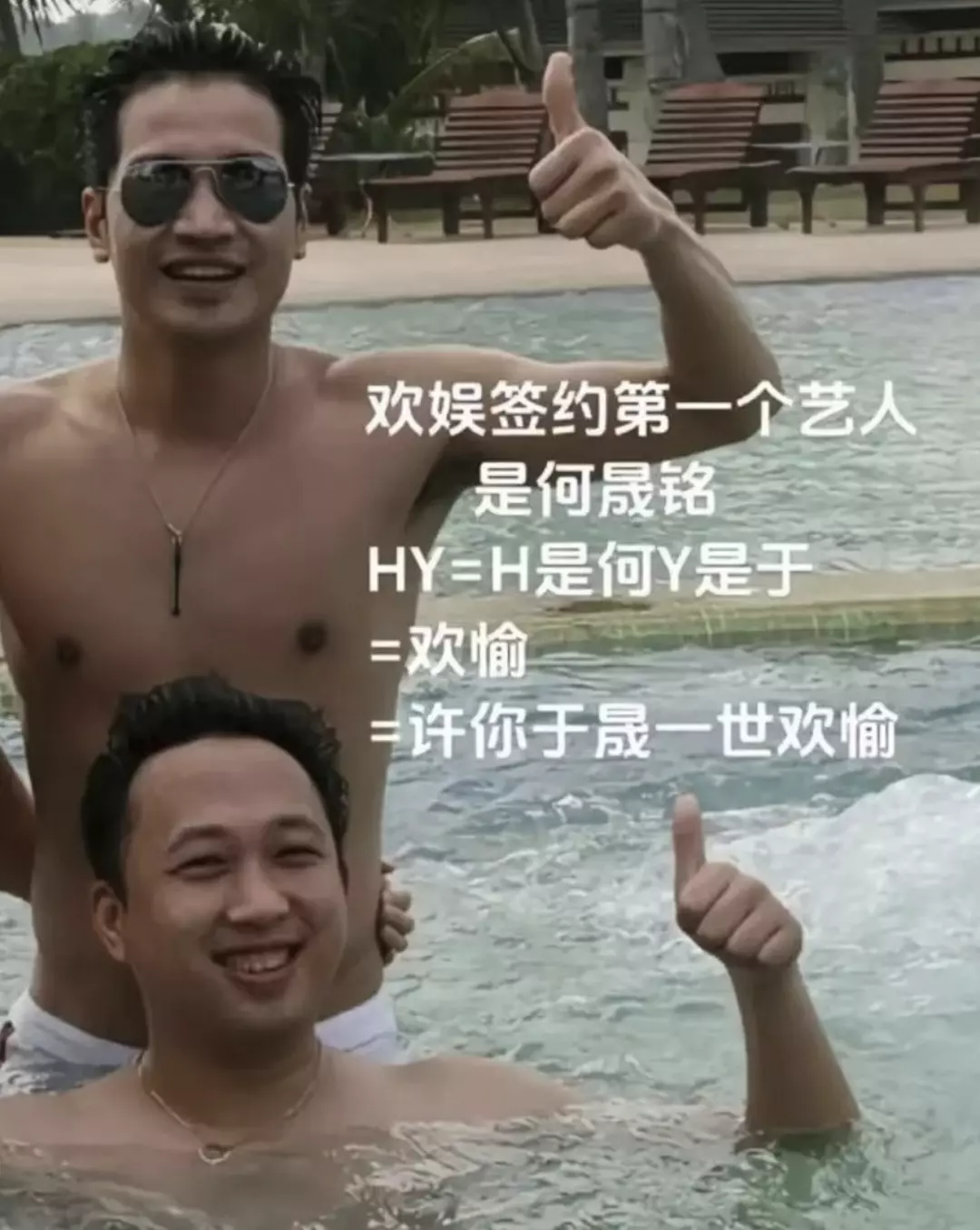 那段日子里,两人朝夕相处,亲密到被粉丝调侃“像谈恋爱一样”——泳池边戴着1和0的同款项链,于正从背后温柔搂住何晟铭,拍戏时于正总挤到何晟铭身边站位,连欢娱的logo都被扒出是二人首字母。何晟铭后来回忆,那时的他们不仅是合作伙伴,更是灵魂契合的战友,彼此扶持着站上事业巅峰。