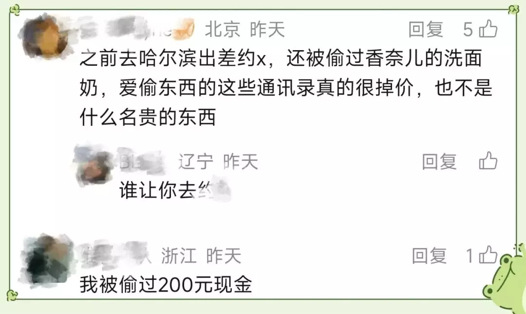 还有人被偷走香奈儿洗面奶、200元现金。