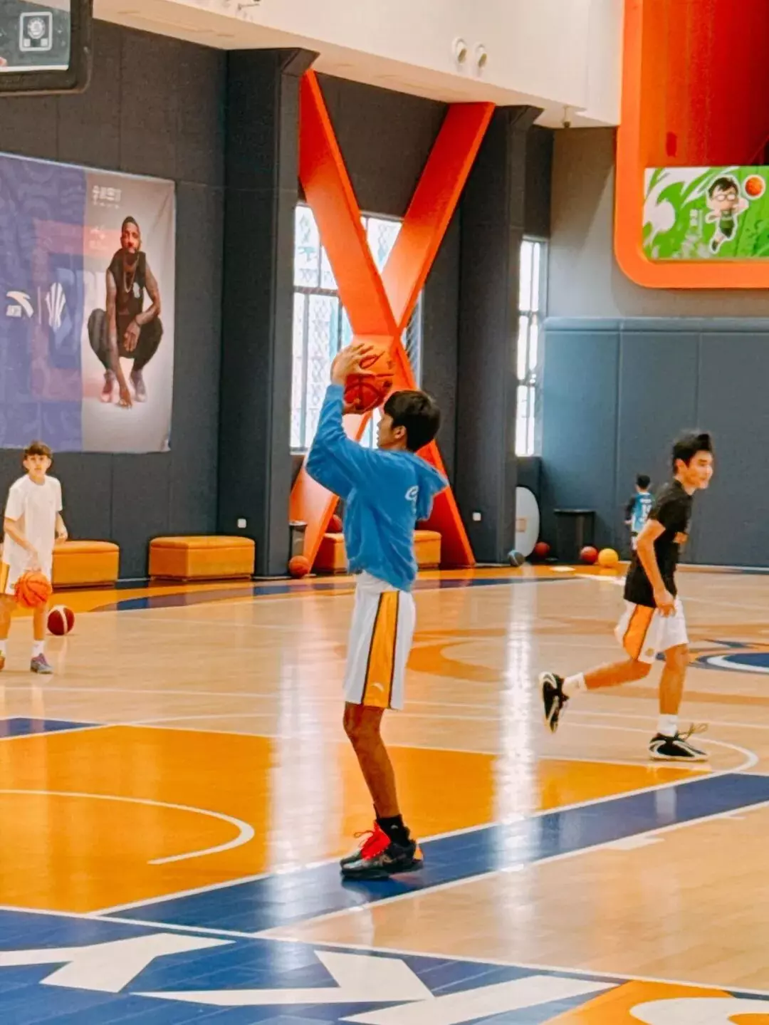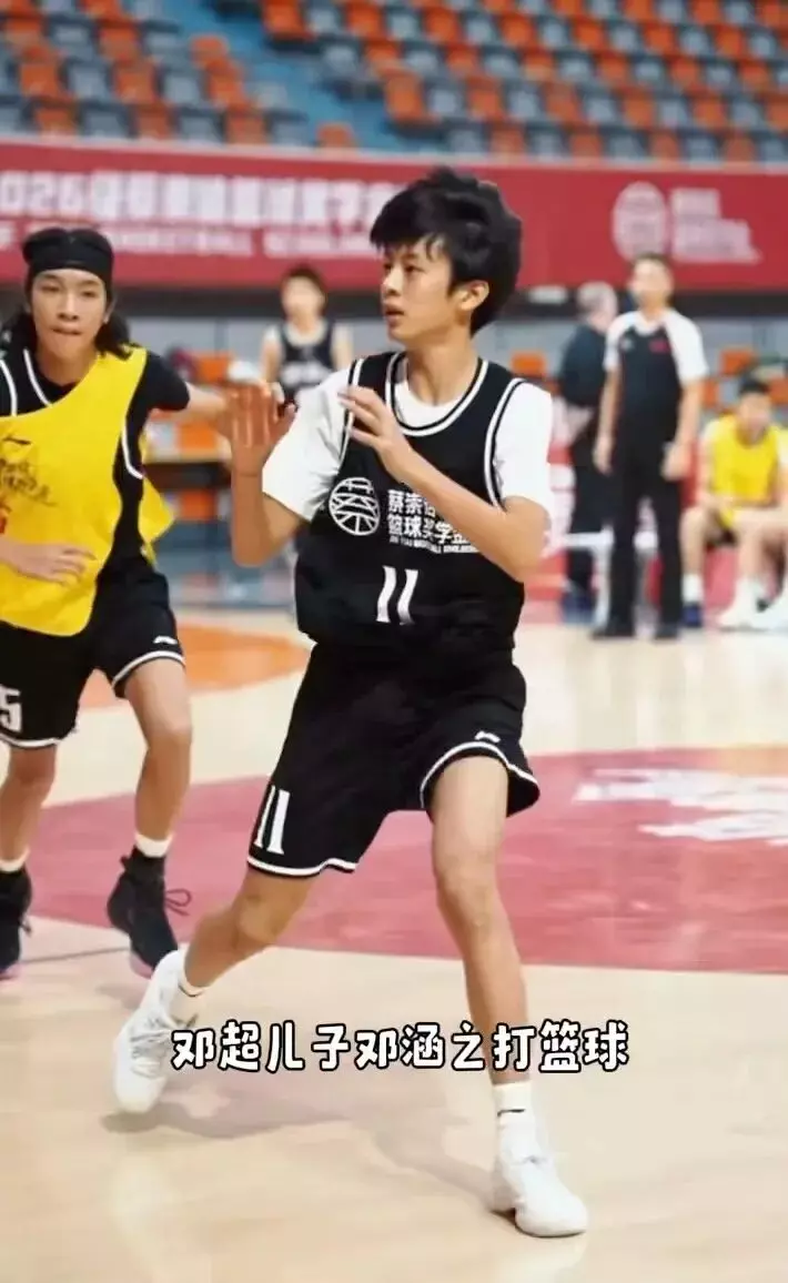 更绝的是他的身材比例,完全长在了 “校园小说男主” 的审美点上!14 岁身高已经冲到 174cm,直逼爸爸邓超,四肢修长舒展,肩宽腰窄,穿简单的白色篮球服 + 同色系短裤,都能穿出高定感。