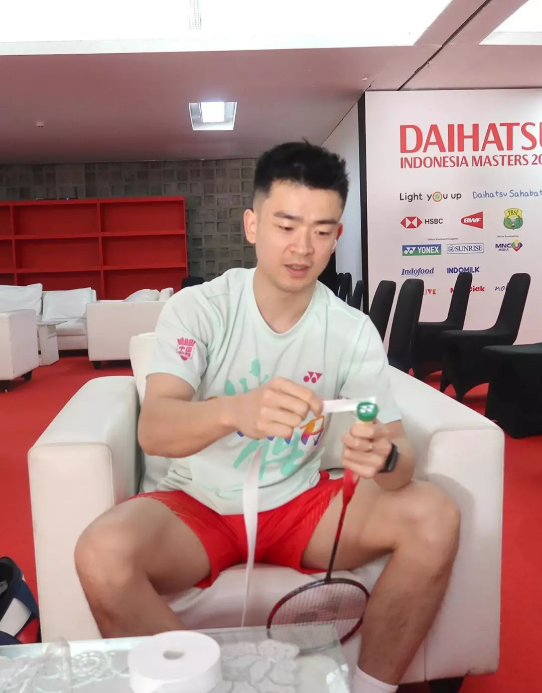 视频里他专注缠绕球拍绷带的画面,堪称圈粉名场面。指尖灵活操作,神情专注投入,每一个动作都透着对羽毛球的极致热爱。不得不说他穿红色运动短裤好性感呀!这一刻,他不是高高在上的奥运冠军,只是沉浸在热爱里的运动员,这份认真与执着,比任何华丽包装都更具吸引力。
