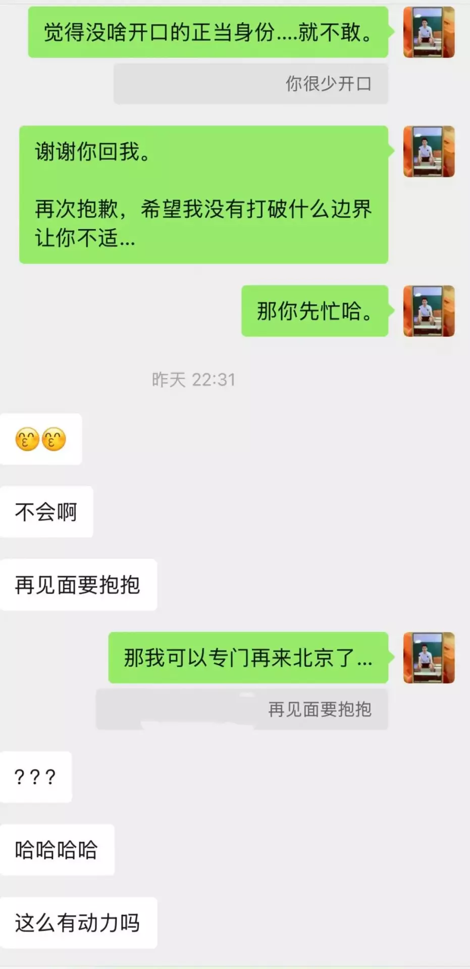 惊讶之二,他居然主动给我说,再见面要抱抱。