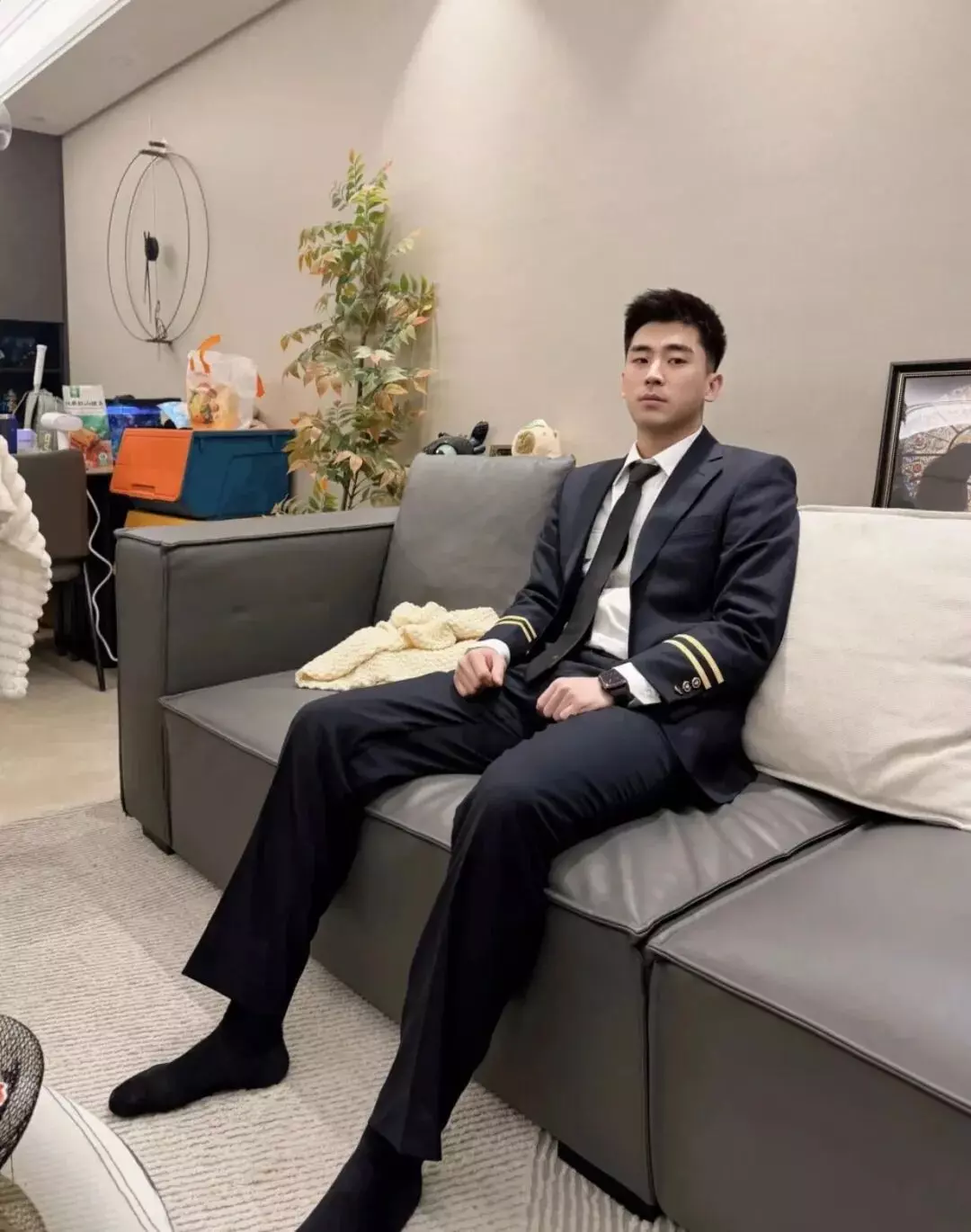 帅气的空少小哥哥,穿制服黑袜太有味道了
