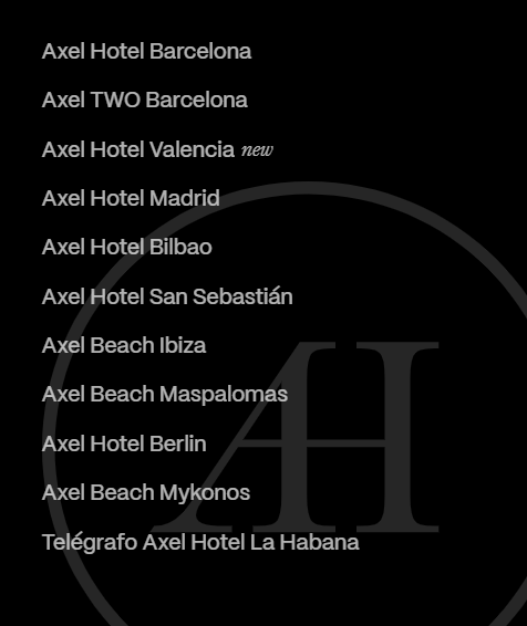 创建这家酒店的初衷是希望打造一个让LGBT群体感到自由舒适、以多元化为核心价值的场所。该连锁酒店的第一家分店于2003年在西班牙巴塞罗那开业。2007年,阿根廷布宜诺斯艾利斯和德国柏林分别开设了第二家分店。据Axel Hotels统计,酒店约75%的客人为LGBT群体,25%为异性恋客人。