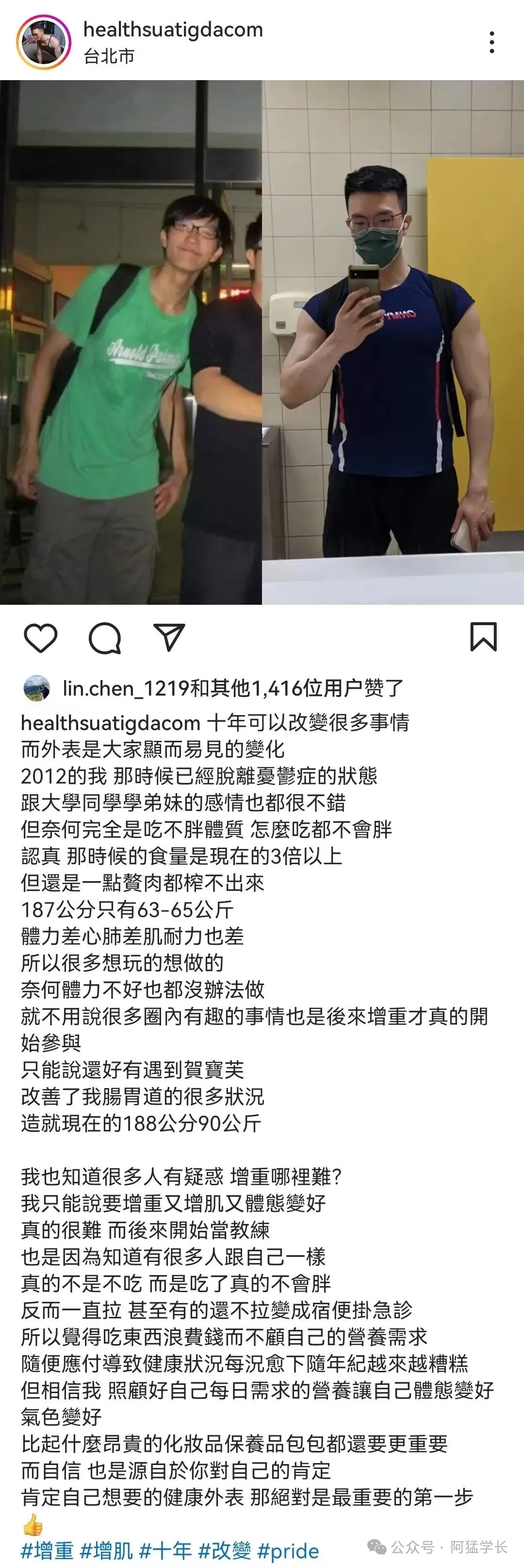 最后如果你也喜欢他的话,记得关注他的Ins。详见(他的健身经历自述)