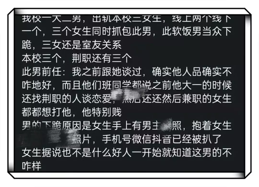 网友爆料,这位哥竟然出轨,同时劈腿3个女生……这仨人还是室友,emmm……咱就是说,这波操作真的很难评!