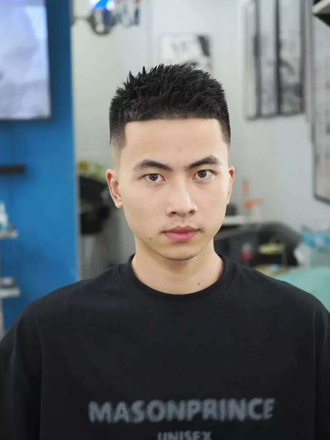 如果你觉得微分发型打理有难度,又担心烫发会损伤发质,那么阿潮建议你试试上面这款短刘海抓发;两边及后面的头发用推子推剪干净,顶区稍微留长,刘海也剪得极短并修剪出些弧度,然后随意抓出些凌乱感就可以了,整体造型很简单,看起来也非常帅气有魅力!