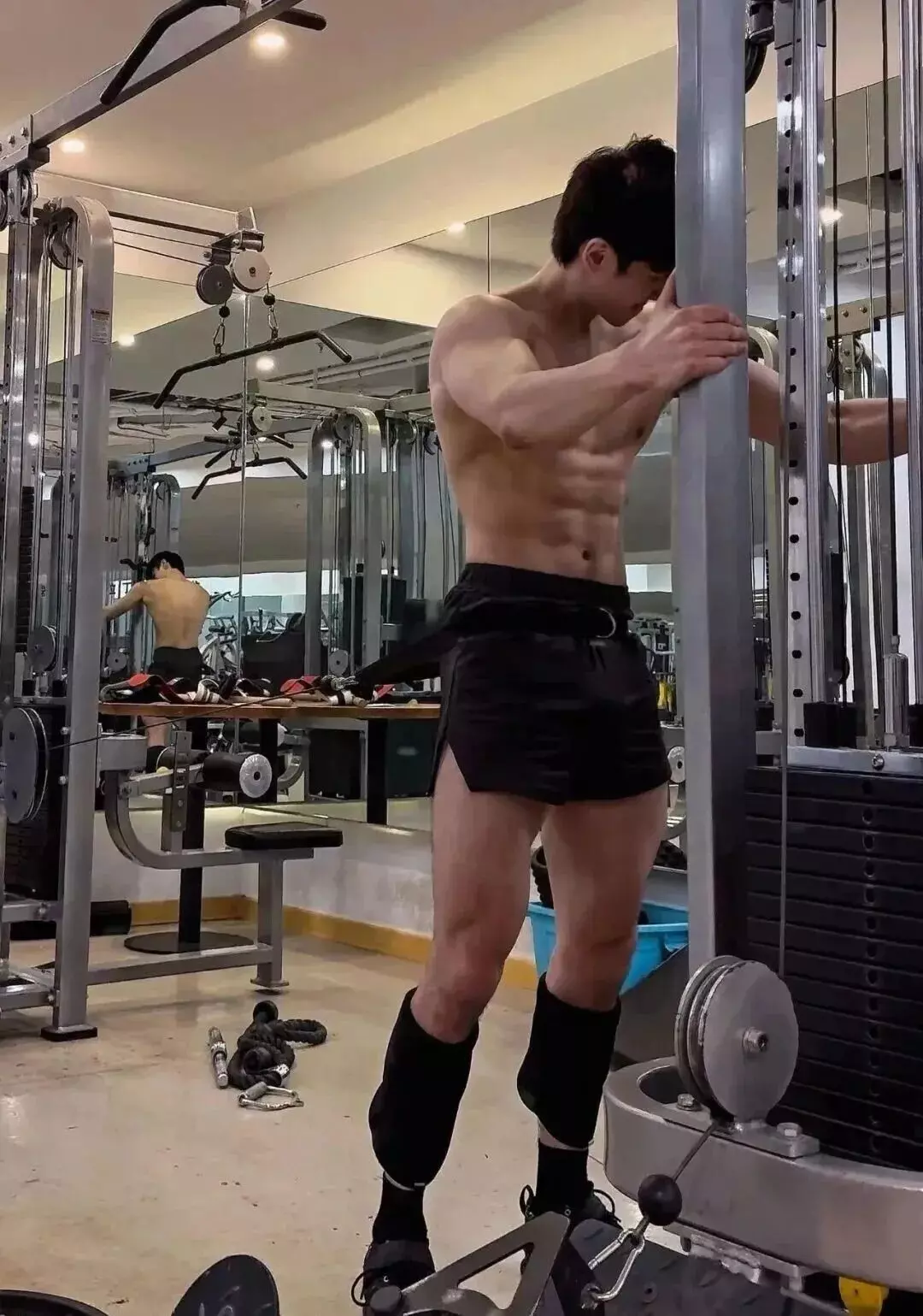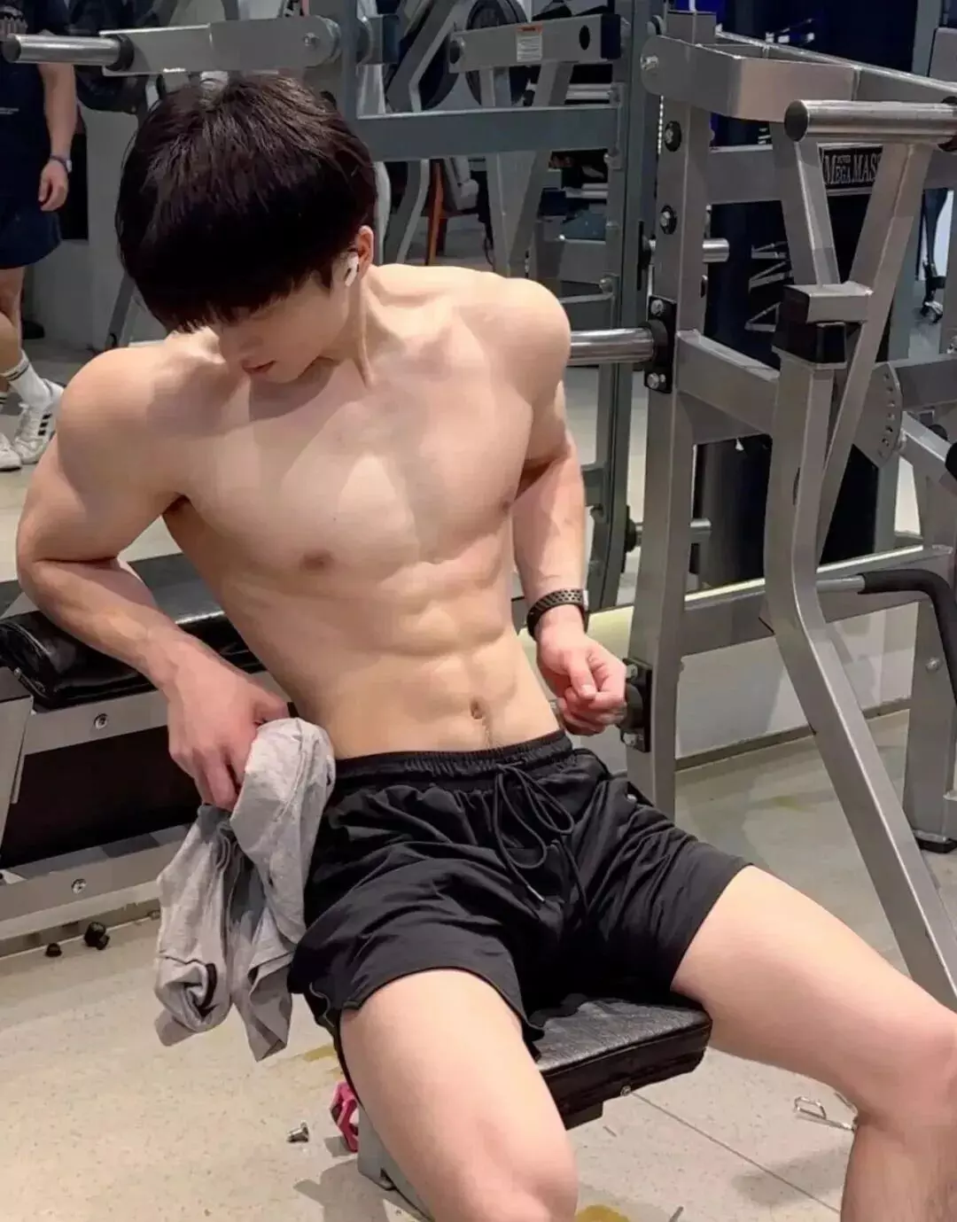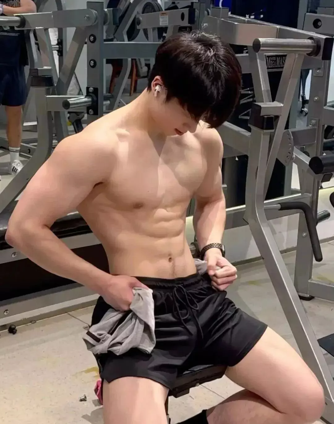 穿上衣服的时候偏清爽,像校园里那种普通男生,脱掉上衣进入训练状态,气质会切换到另一面。