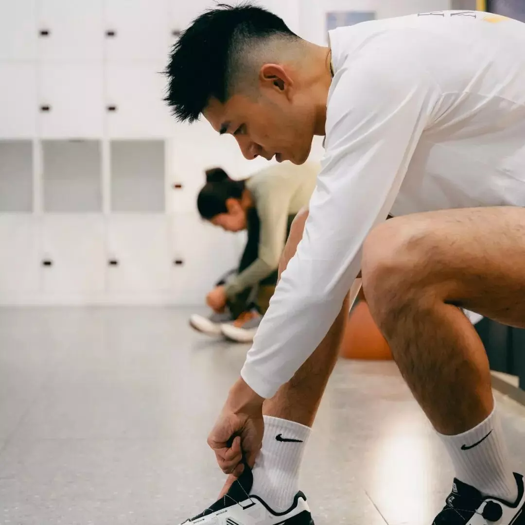 系鞋带这个动作,我以前从没觉得有什么。低头、专注、腿部肌肉自然绷紧——就是这么一个准备运动前最普通的瞬间,被他过成了荷尔蒙满满的画面。这种“不加表演的真实感”,才是真正的致命之处——你看着他,会突然很想去锻炼,又好像只是想继续看他。