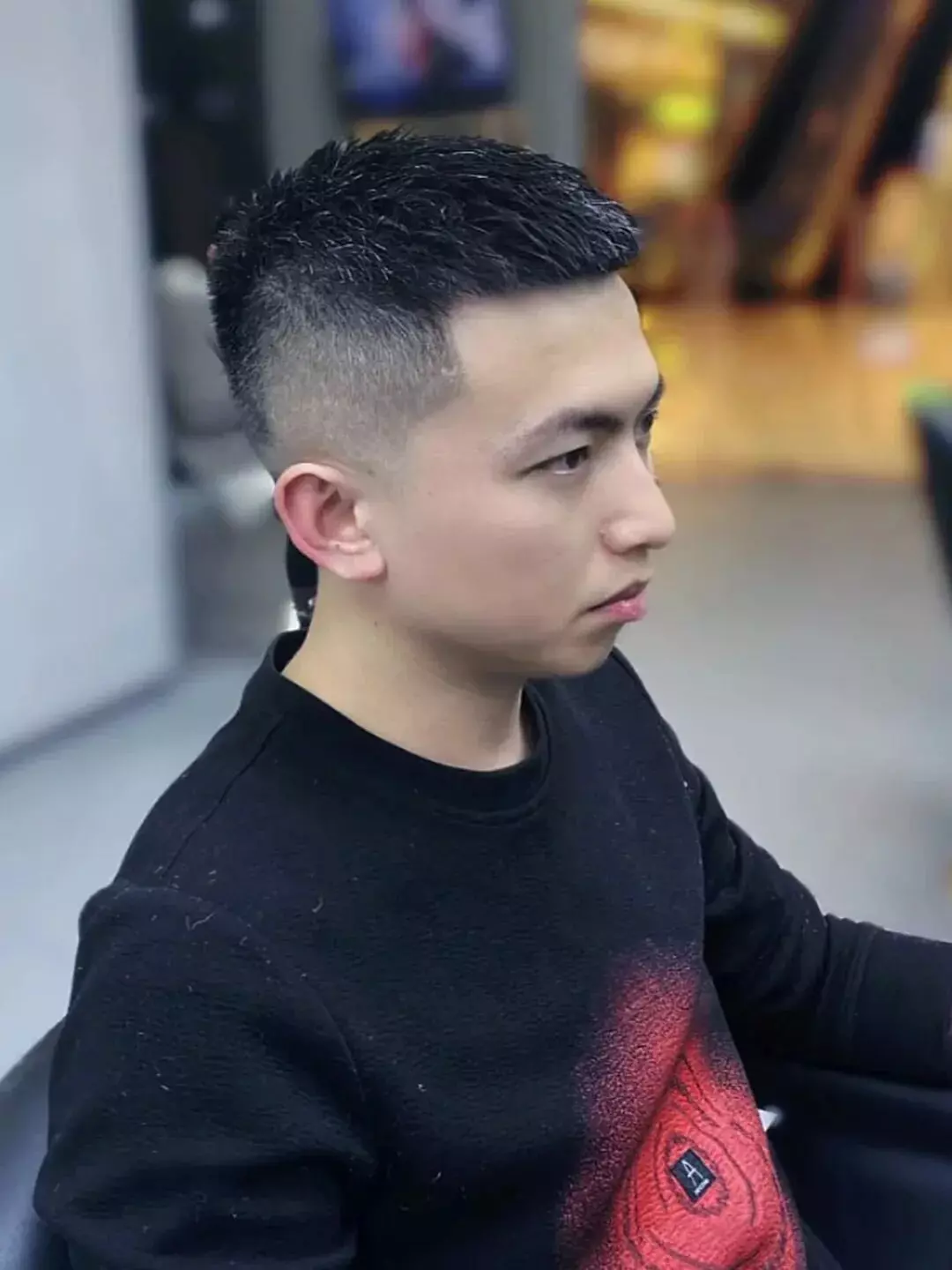 大家可以试试上面这款前刺碎发,两侧不需要剃得太光,顶部头发可以稍微留长一点并剪碎,然后用发蜡抓出往前翘起的效果(注意:不用翘太高,否则会显得很浮夸),整体感觉非常帅气有个性,完美展现型男气质。