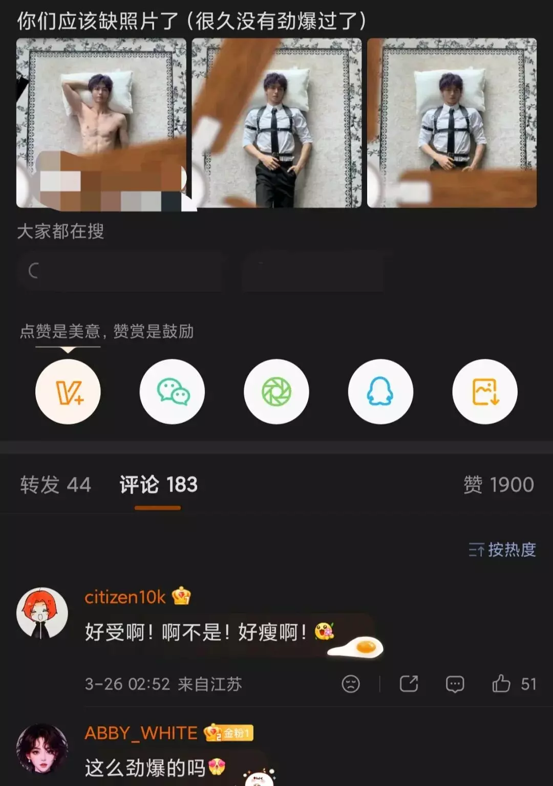 这些“神图”爆火全网后,网友们纷纷在评论区留言。有人惊叹于他的好身材,有人夸赞他的时尚品味。然而,也有网友声称他曾经的照片更加劲爆。原来,在他早期的作品中,还有一些更大胆、更具冲击力的照片。那些照片可能更加直接地展现了他的身材优势,让人印象深刻。