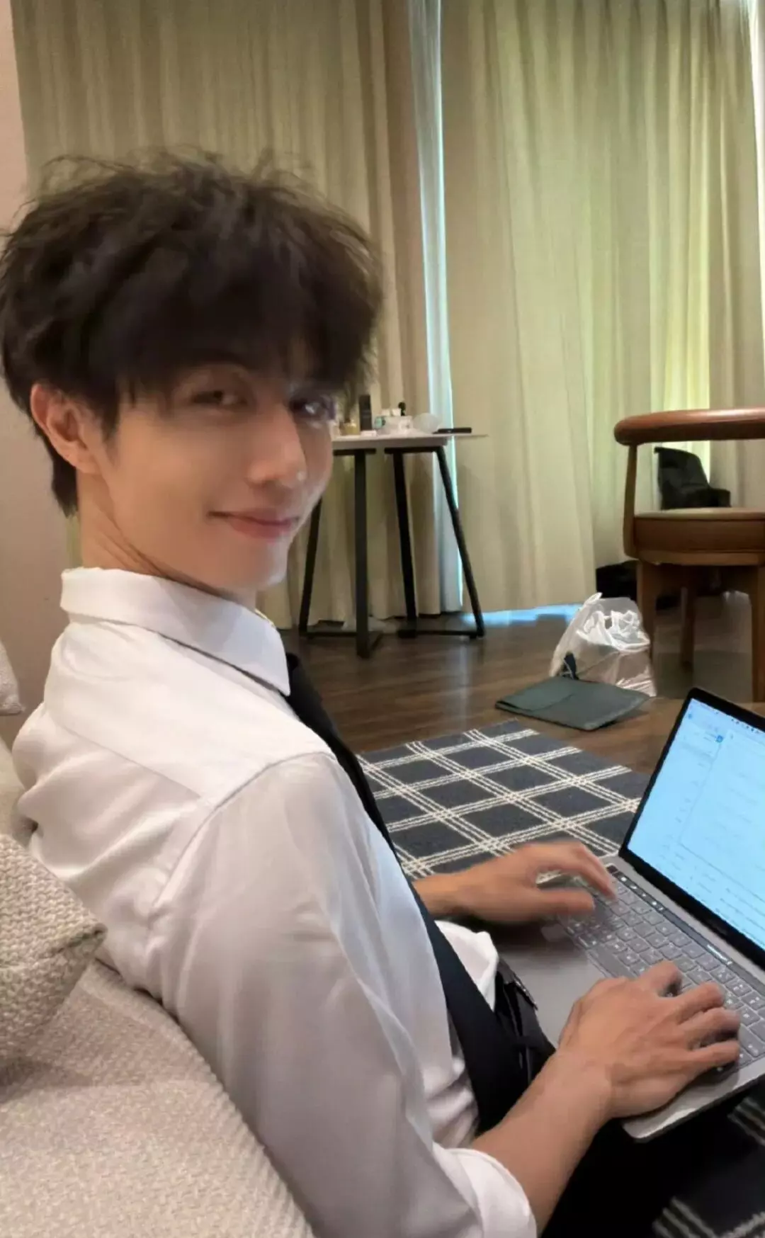 他的照片风格更是别具一格。其中一张照片中,他将手轻轻放在嘴唇上,眼神中透露出一丝魅惑,仿佛在向镜头诉说着什么。这个姿势恰到好处地展现出了他的性感与魅力,让人看了不禁心动。这张照片一经发出,就迅速在网络上传播开来,吸引了无数粉丝的关注。