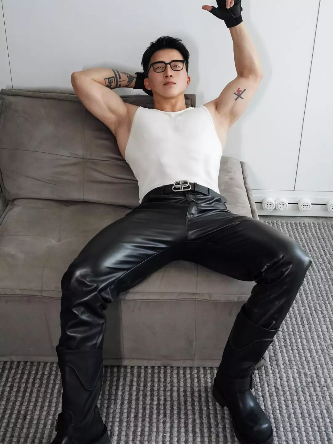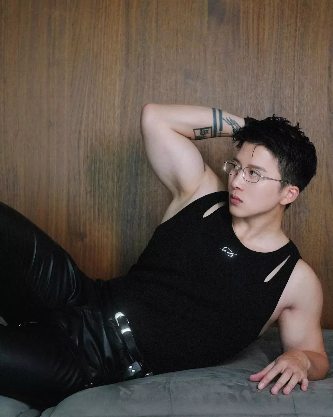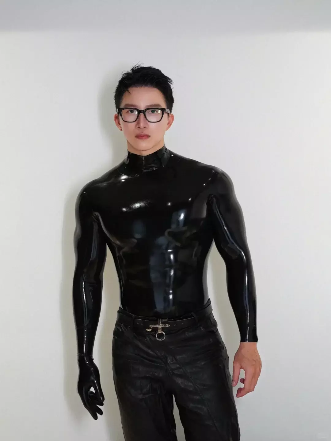 比如胶衣、贴身运动服之类。说实话,这种衣服很挑人,身材和气质差一点都撑不住。他穿上之后,不会觉得突兀,反而有种“他本来就该这样”的感觉。