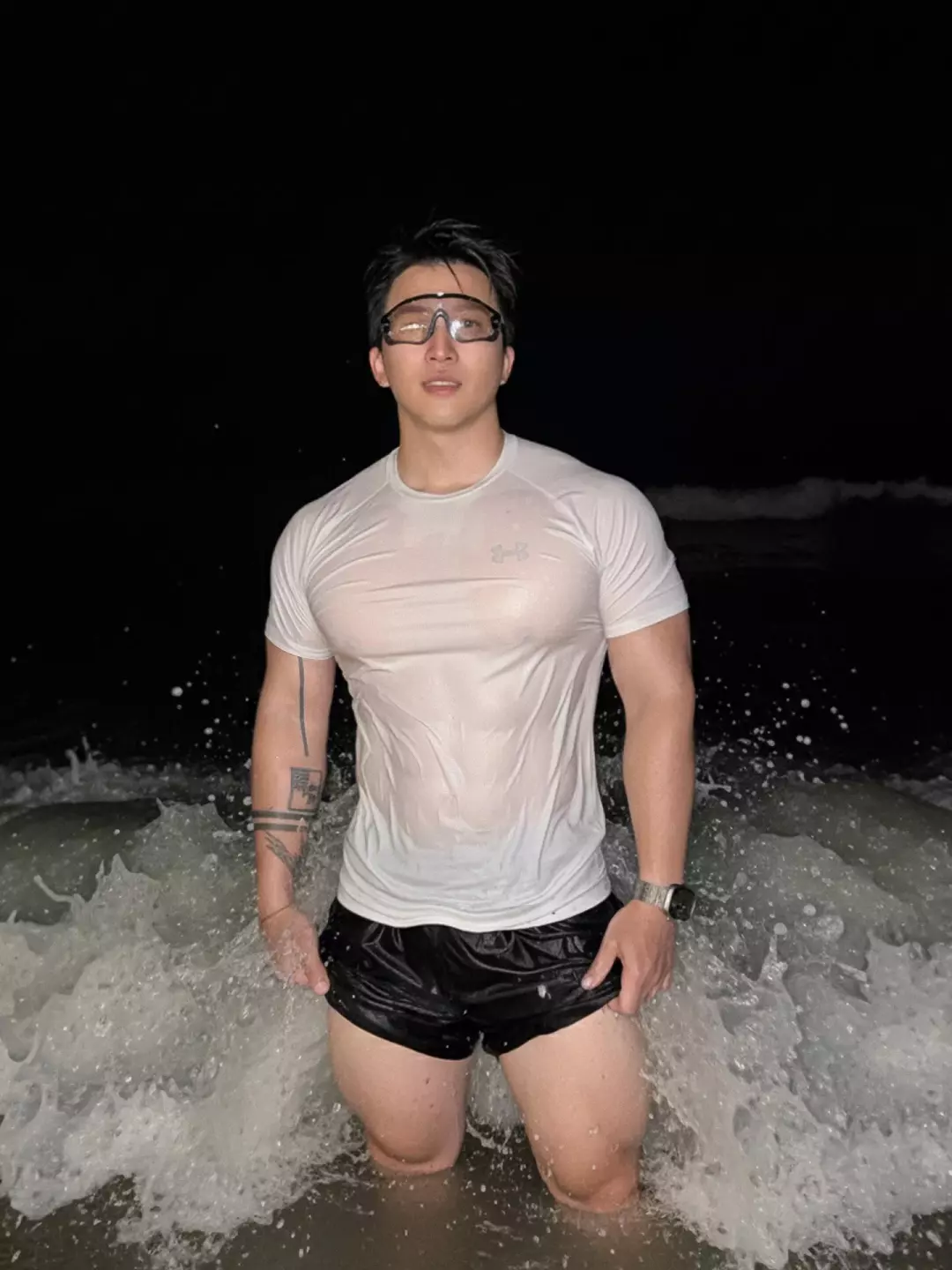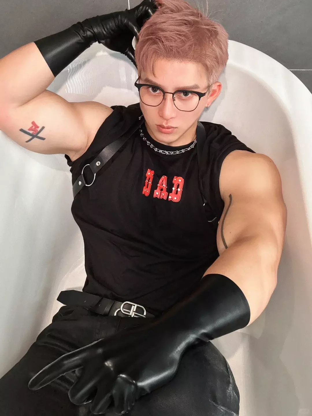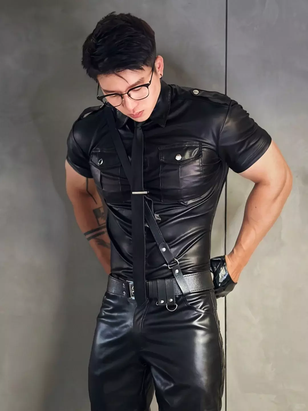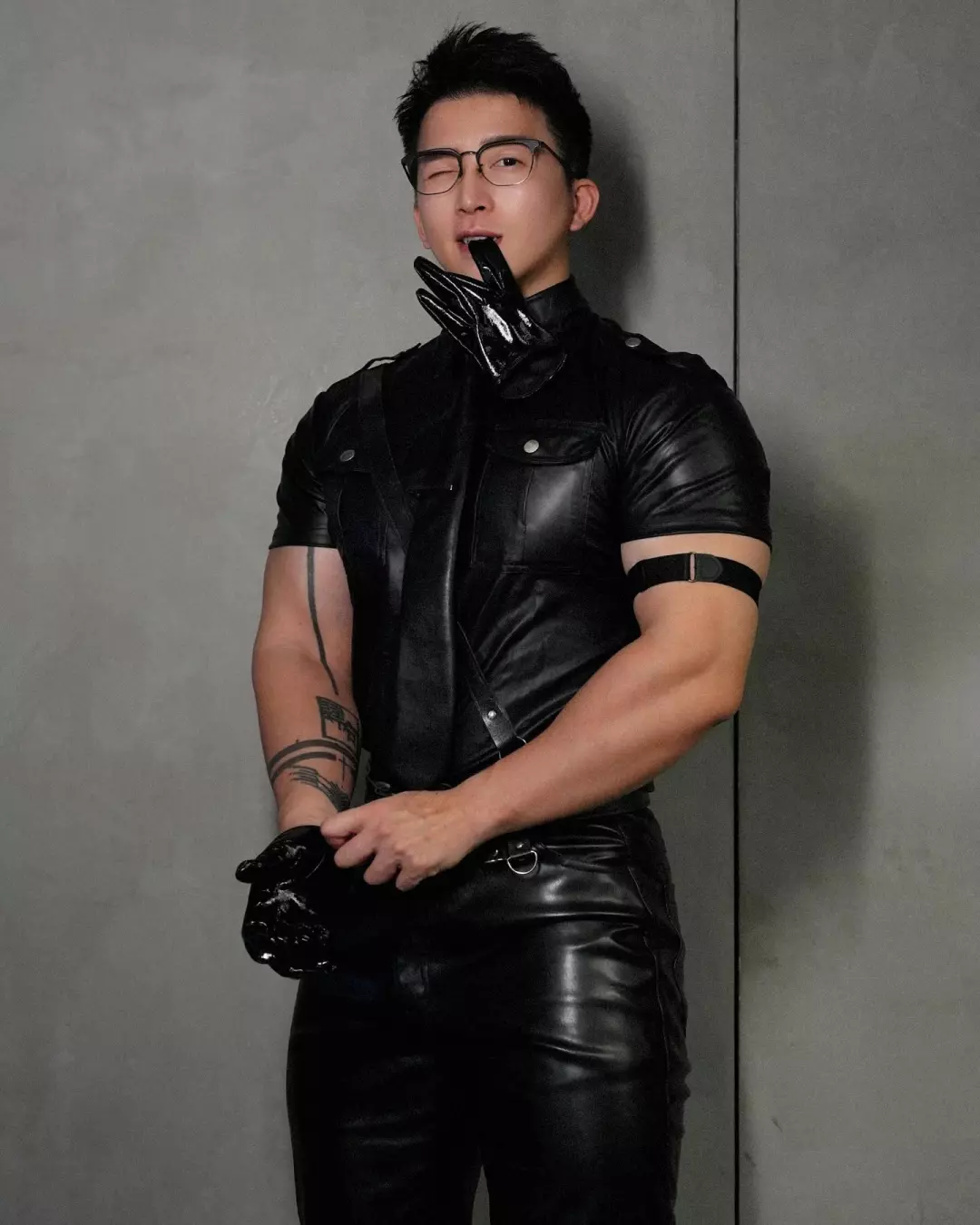 比如胶衣、贴身运动服之类。说实话,这种衣服很挑人,身材和气质差一点都撑不住。他穿上之后,不会觉得突兀,反而有种“他本来就该这样”的感觉。