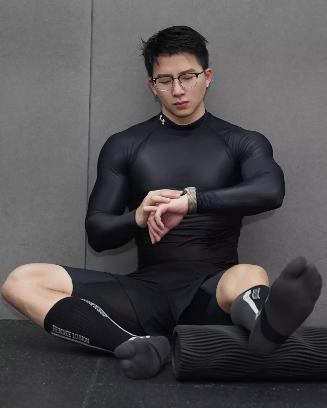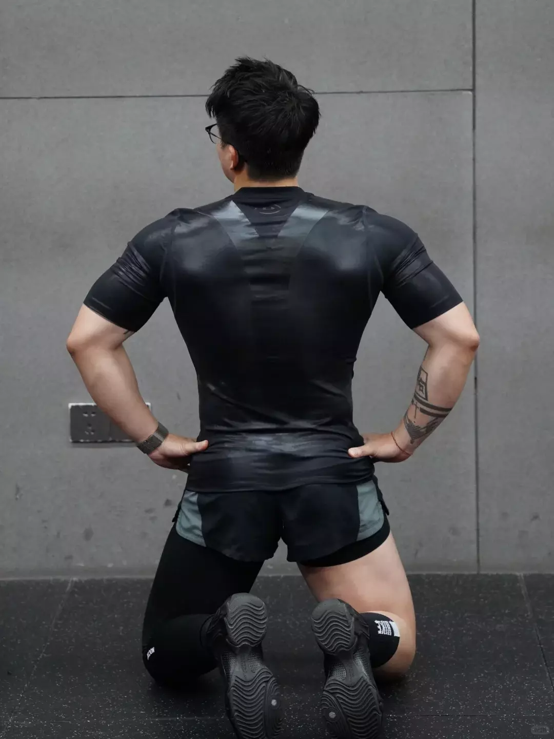 有一组照片是在健身房拍的,他穿一身黑,帽子压低一点,只露出下颌线。那张图挺典型的,气氛不复杂,但整个人很立体。黑色把肤色衬得更深一点,肌肉边缘更清晰。