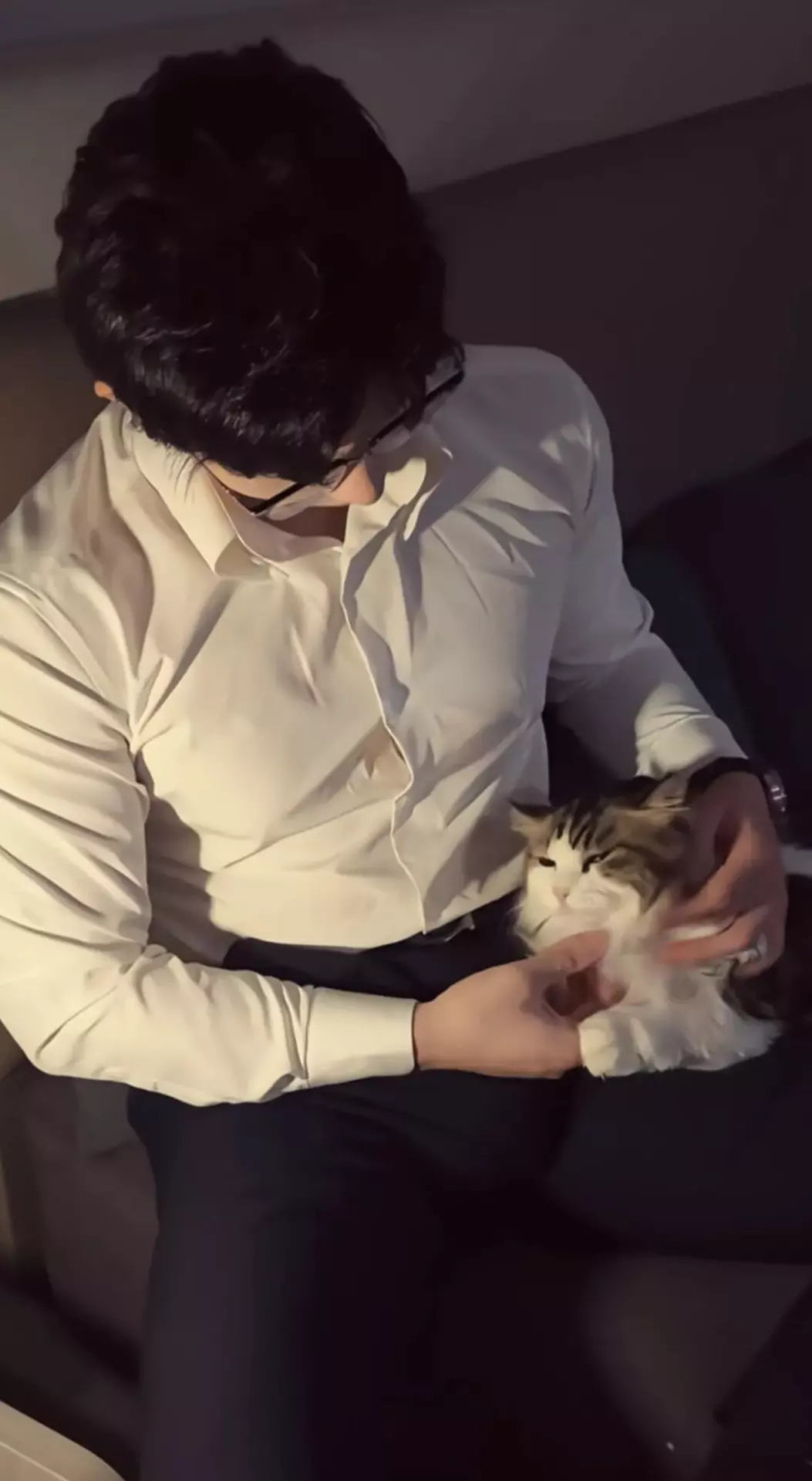 更让人招架不住的是他的“人夫感”,这种气质在他慵懒坐在沙发上时达到顶峰。宽松的衬衫随意敞开一颗扣子,露出精致的锁骨,手臂搭在沙发背上,整个人散发着温柔又可靠的气息。就是这样一个不经意的瞬间,让男粉们集体破防,纷纷在评论区喊“爸爸”,这份独有的成熟与温柔,让他的人夫魅力直接拉满。