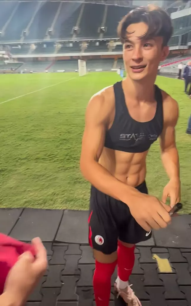 188cm的挺拔身形,比例堪称完美,没有丝毫笨重感,反倒兼具运动员的力量感与少年感。深邃的眼眸、立体的五官,自带混血独有的精致感,笑起来阳光治愈,褪去青涩尽显成熟魅力,站上绿茵场,无需刻意摆拍,便是自带氛围感的画报级选手。