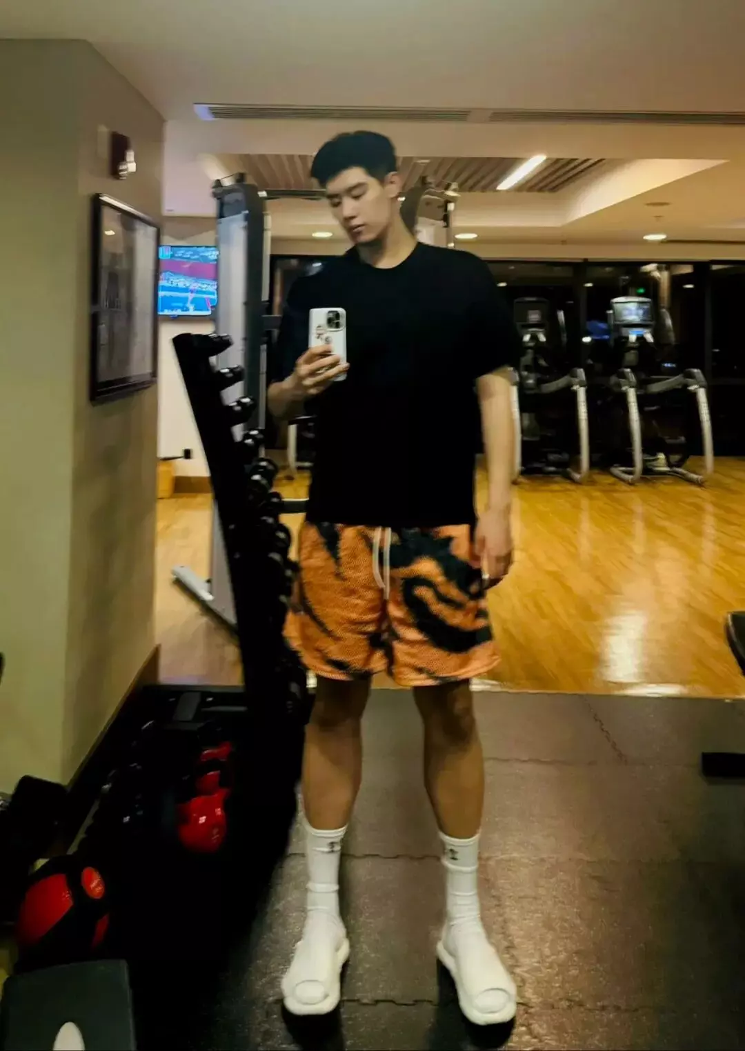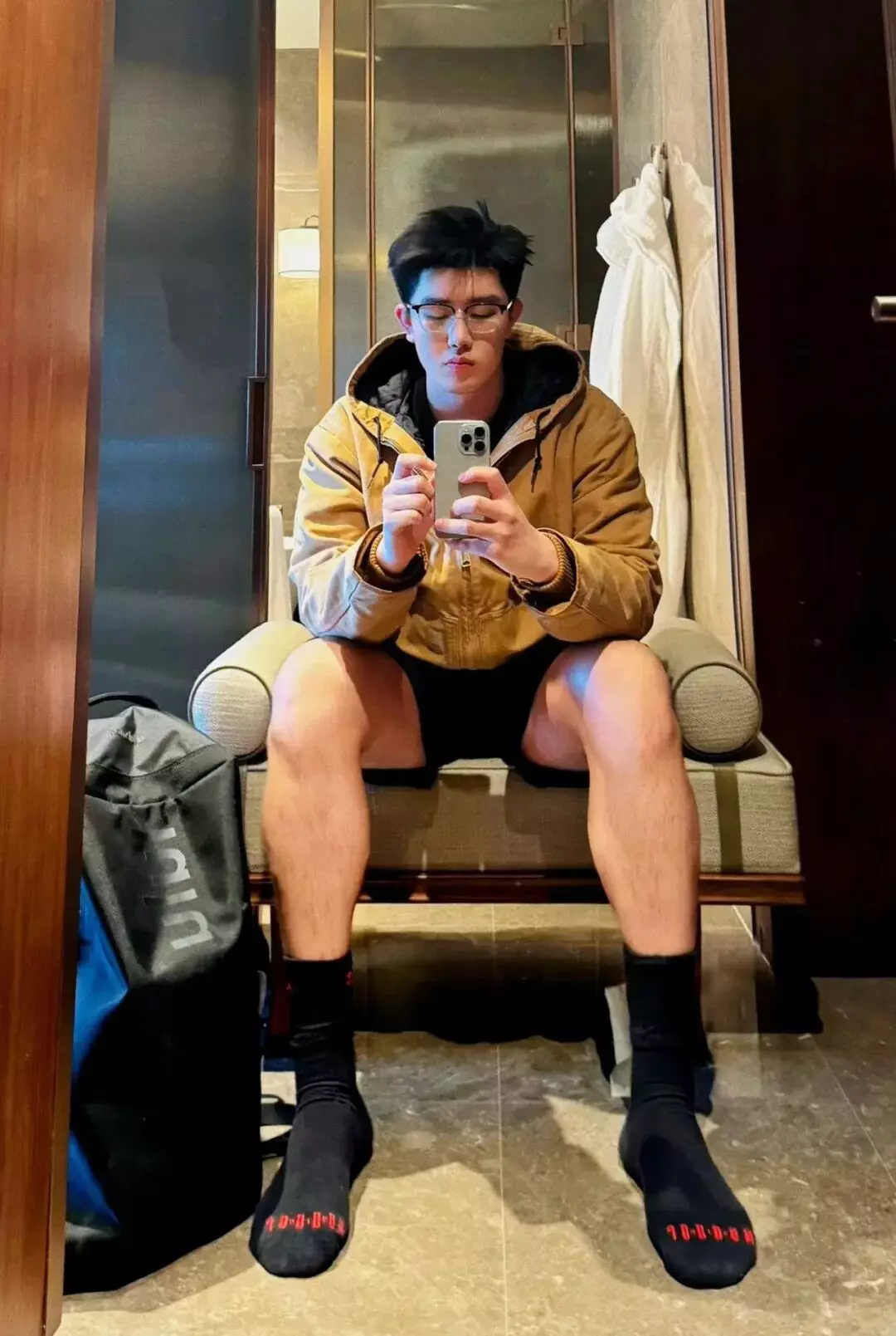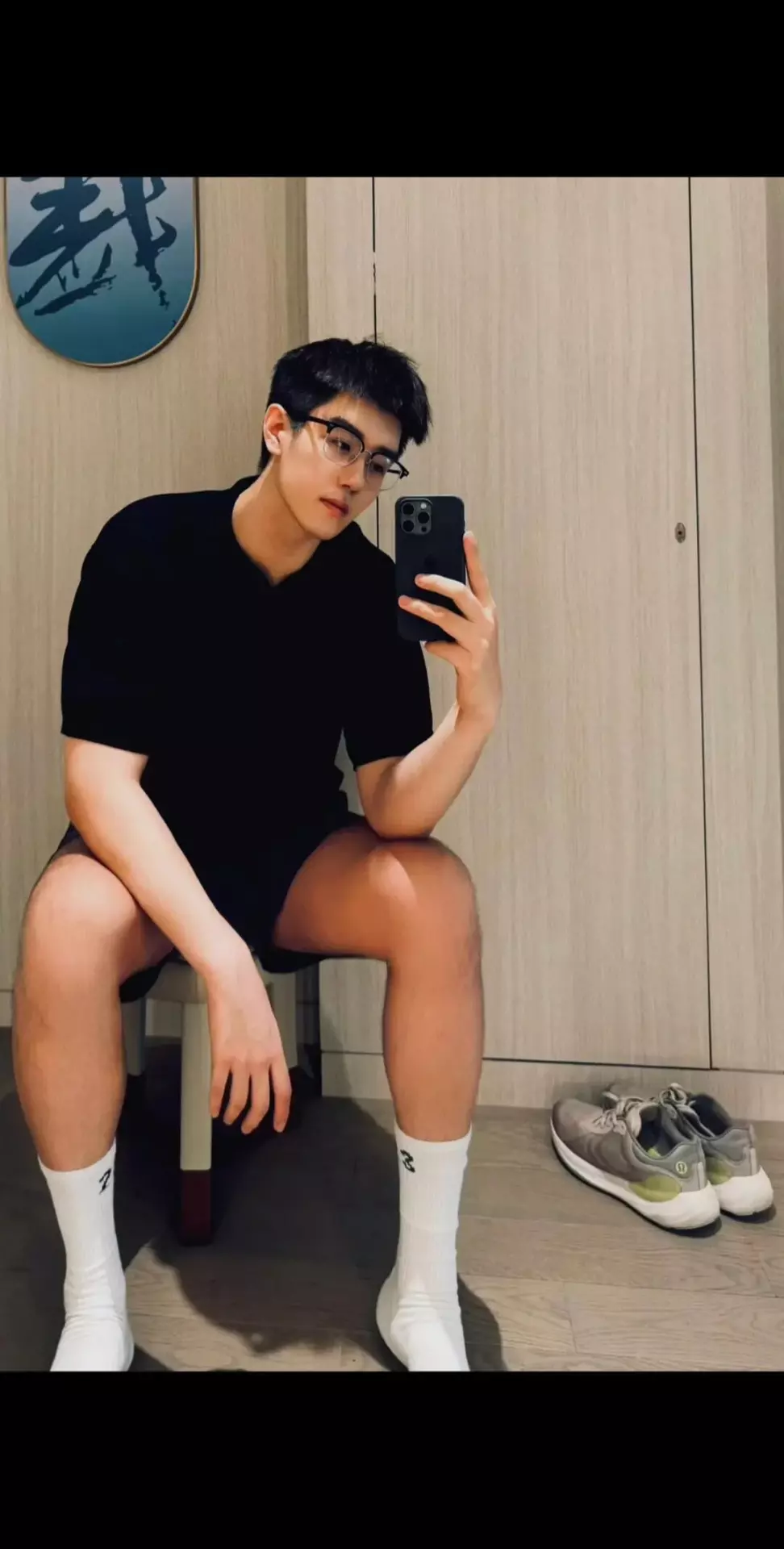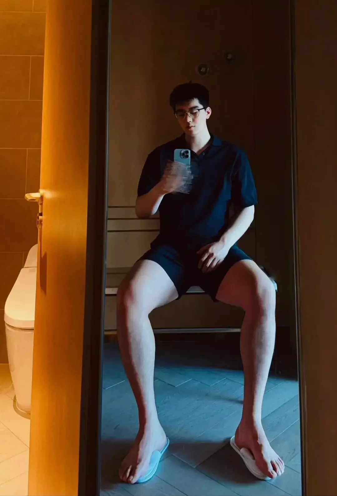 精致帅脸和大长腿的搭配,看得人眼花缭乱。尤其是健身后的浴室对镜拍,黑色棉袜裹住44码的脚掌,汗湿的袜口卡在凸起的踝骨上,水珠悬在蜷曲的腿毛间摇摇欲坠……这画面,简直让人忍不住想舔屏!