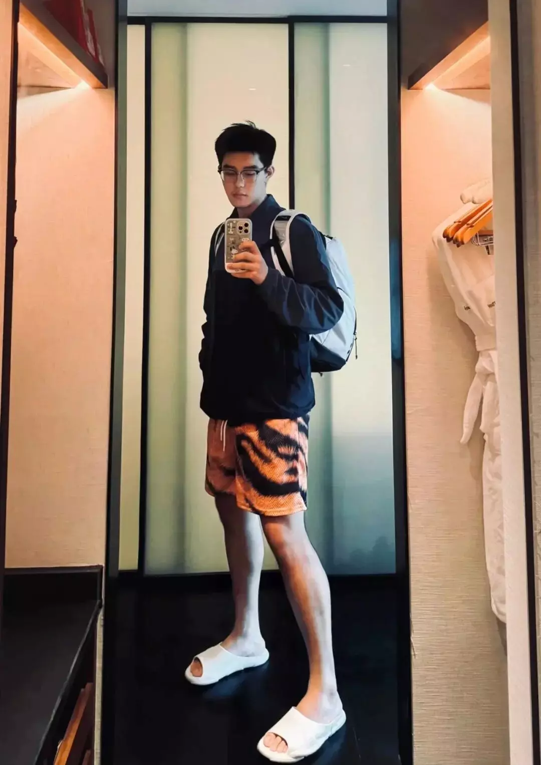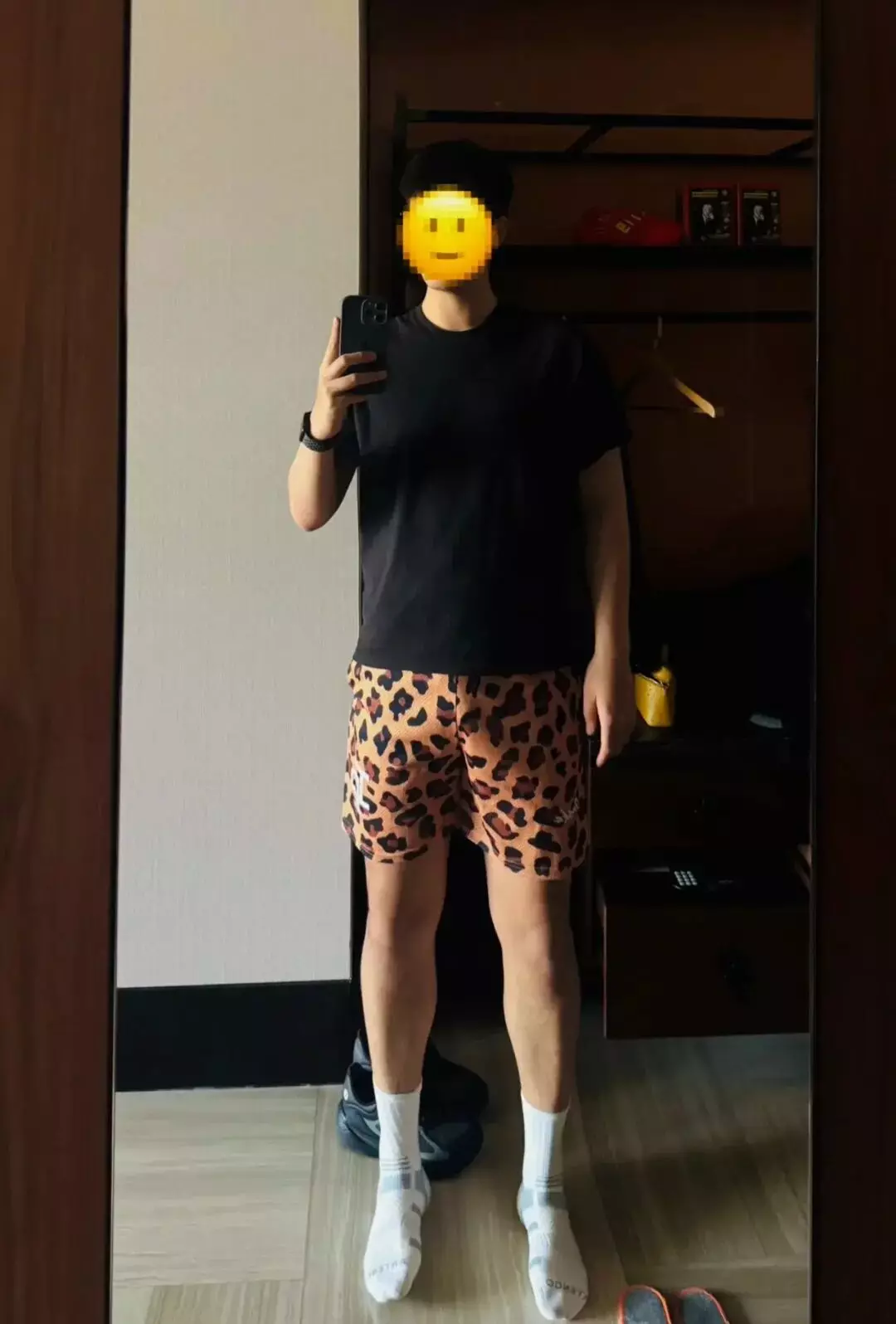 如今再看小哥哥的社交平台,清一色的画风都是这样的……豹纹短裤+性感大脚……还有这个姿势……小哥哥你是真的懂啊!即便是在酒店里,大概也是这种风格……emmm……总觉得他是在勾引撩拨。一套连招下来,真的呼吁小哥哥和黑袜焊死!诱人的荷尔蒙这不就有了吗?
