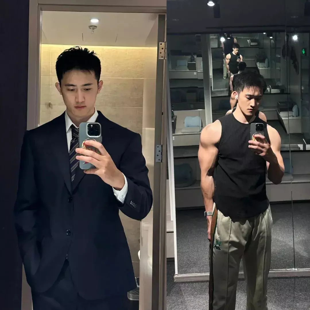 除了白大褂和健身服,小哥穿正装的样子更是让人眼前一亮!笔挺的西装被肌肉身材稳稳撑起,没有一丝松垮感,既有医生的儒雅沉稳,又有健身达人的硬朗气场,气质直接翻倍。
