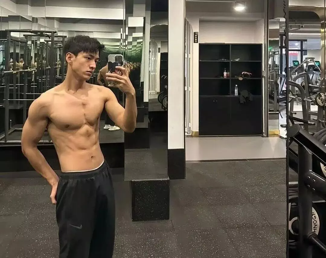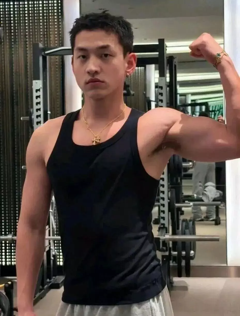 就拿他在健身房的自拍来说,镜头里的他,没有夸张到突兀的大块肌肉,而是恰到好处的薄肌线条 —— 肩背线条格外清爽挺拔,没有一丝多余的赘肉,穿上紧身运动背心时,能清晰看到背部肌肉的流畅走向,显得整个人格外精神利落。
